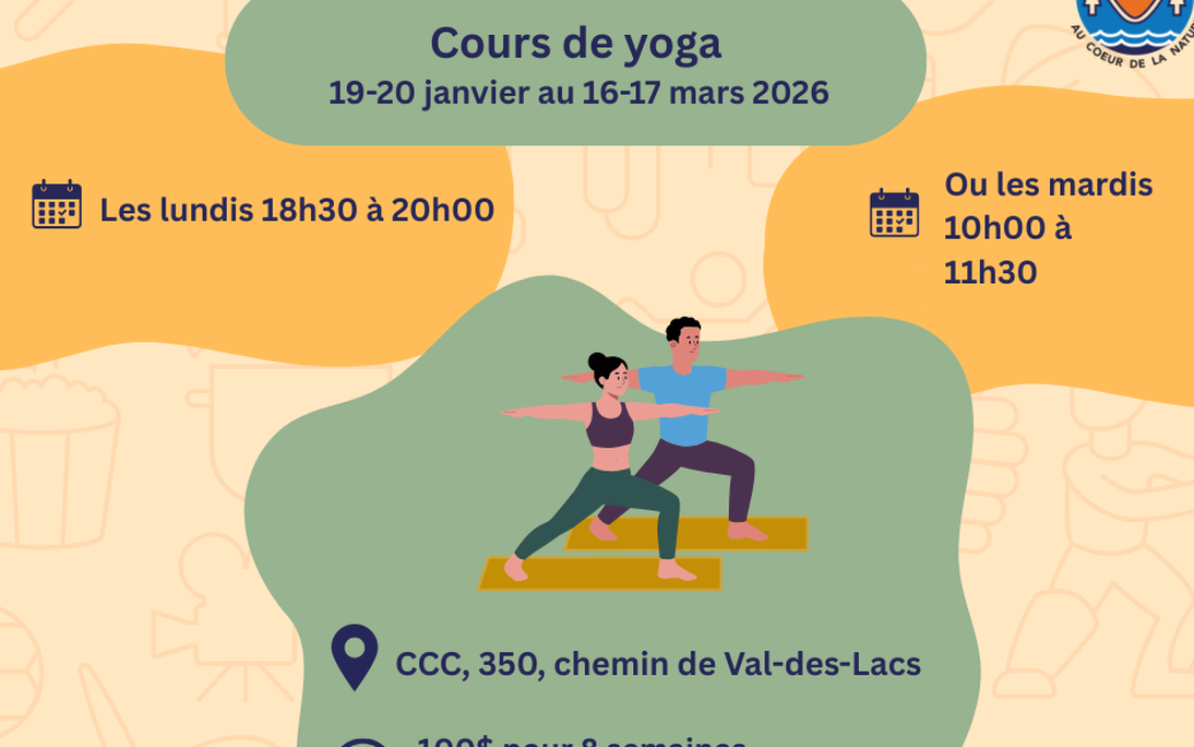 Mot de Sylvie : « Sortez vos tapis et ensemble nous allons explorer quelques types de yoga: hatha yoga, les respirations (pranayamas), plusieurs postures et postures thérapeuthiques, yoga des saisons, les mudra, yoga-nidra.... Le yoga est réputé depuis des millénaires pour regénéré l'esprit, le corps, le mental. Il aide aussi à la gestion du stress et améliore la souplesse et le bien être. Venez vous déposer et au plaisir de faire du yoga avec vous ! »